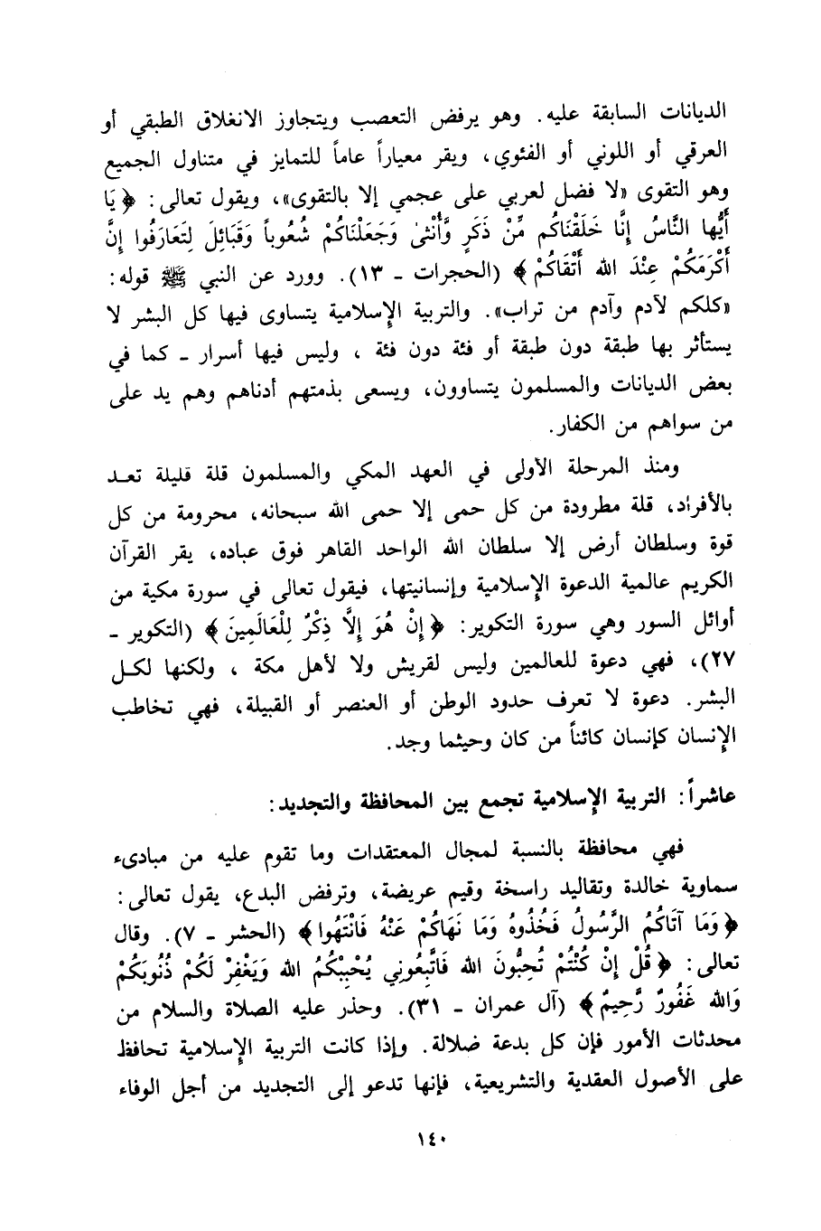 عاشرًا: التربية الإسلامية بين المحافظة والتجديد: