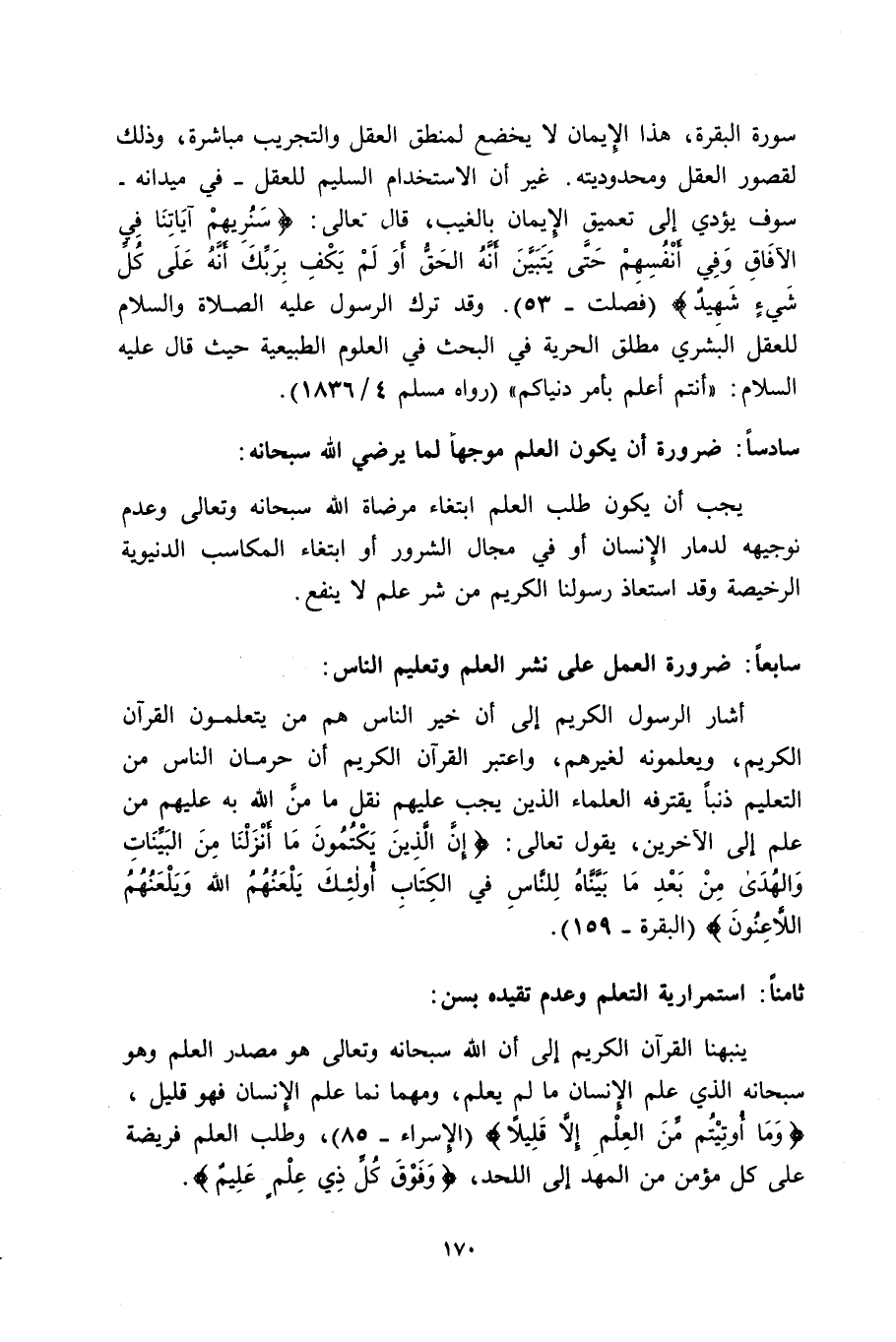 سادسًا: ضرورة أن يكون العلم موجهًا لما يرضي الله سبحانه: