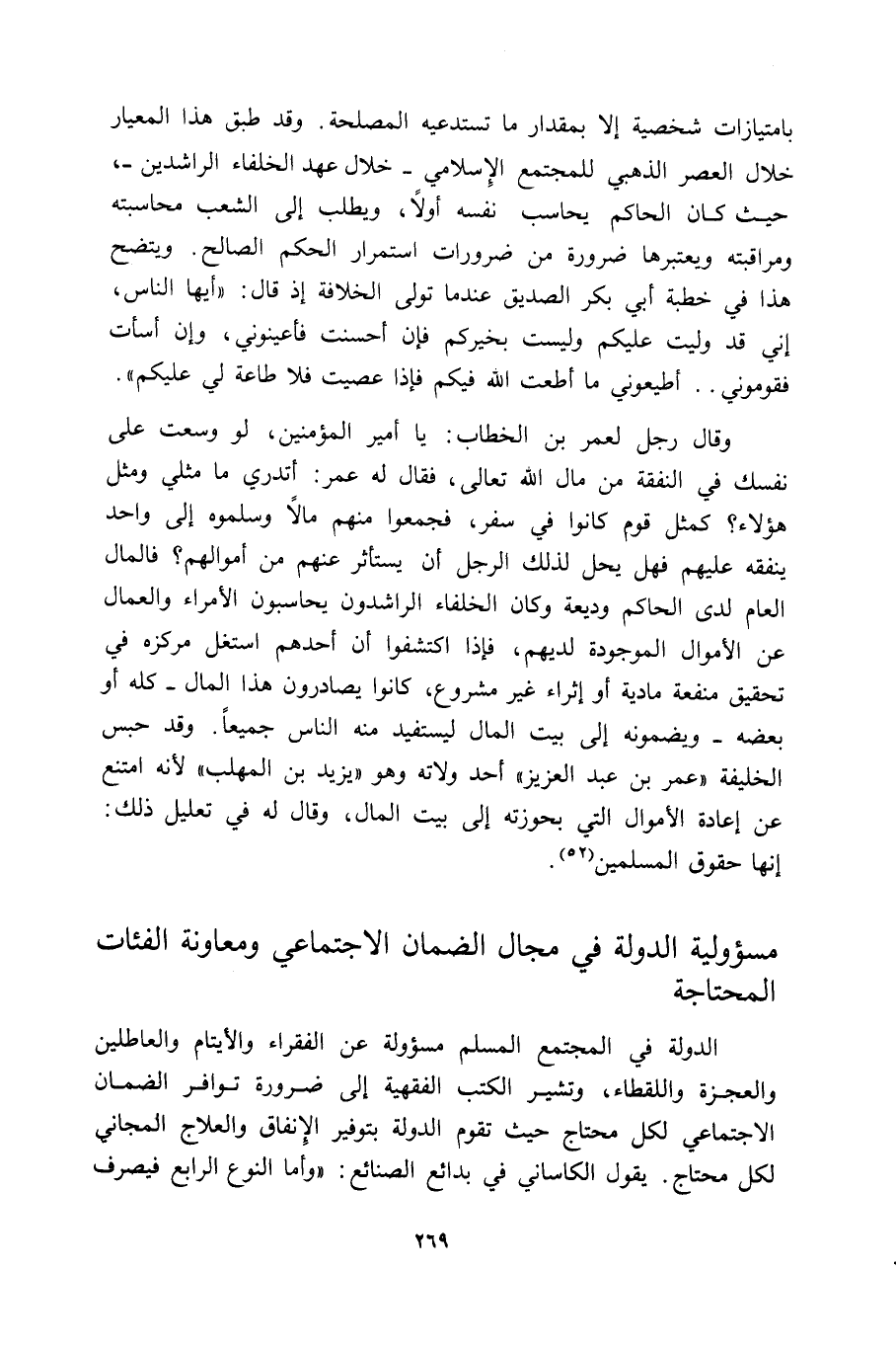 مسئولية الدولة في مجال الضمان الاجتماعي ومعاونة الفئات المحتاجة.