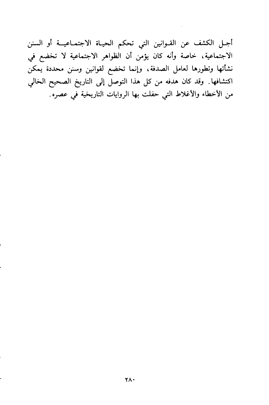 أجل الكشف عن القوانين التي تحكم الحياة الاجتماعية أو السنن الاجتماعية، خاصة وأنه كان يؤمن أن الظواهر الاجتماعية لا تخضع في نشأتها وتطورها لعامل الصدفة، وإنما تخضع لقوانين وسنن محددة يكن اكتشافها، وقد كان هدفه من كل هذا التوصل إلى التاريخ الصحيح الخالي من الأخطاء والأغلاط التي حفلت بها الروايات التاريخية في عصره.