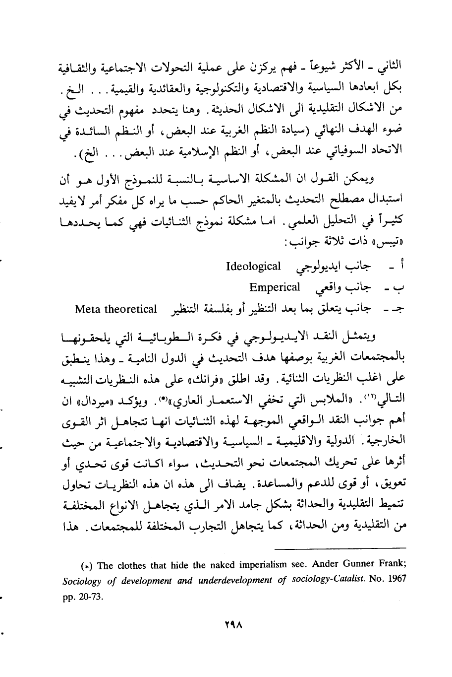 * The clothes that hide the naked imperialism see. Ander Guunner Frank; Sociology of development and underdevelopment of sociology-Catalist. No. 1967 pp. 20-73.
