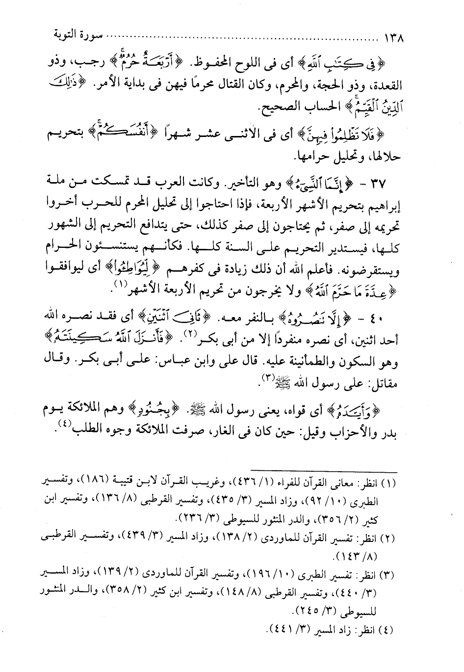 و {إنما النسيء} وهو التاخير وكانت العرب قد تمسكت من ملة ابراهيم بتحريم الاشهر الاربعة فاذا احتاجوا الى تحليل المحرم للحرب اخروا تحريمه الى صفر ثم يحتاجون الى صفر كذلك حتى يتدافع التحريم الى الشهور كلها فيستدير التحريم على السنة كلها فكانهم يستنسؤون الحرام ويستقرضونه فاعلم الله ان ذلك زيادة في كفرهم