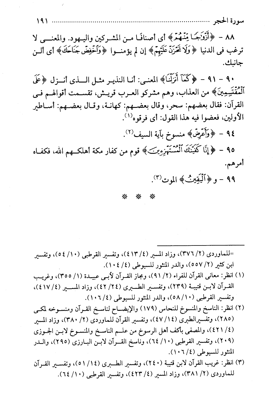 {كما أنزلنا} المعنى أنا النذير مثل الذي انزل {على المقتسمين} من العذاب أوهم مشركوا العرب قريش تقسمت أقوالهم في القران فقال بعضهم سحر وقال بعضهم كهانه وقال بعضهم أساطير الاولين فعضوا فيه هذا القول أي فرقوه
