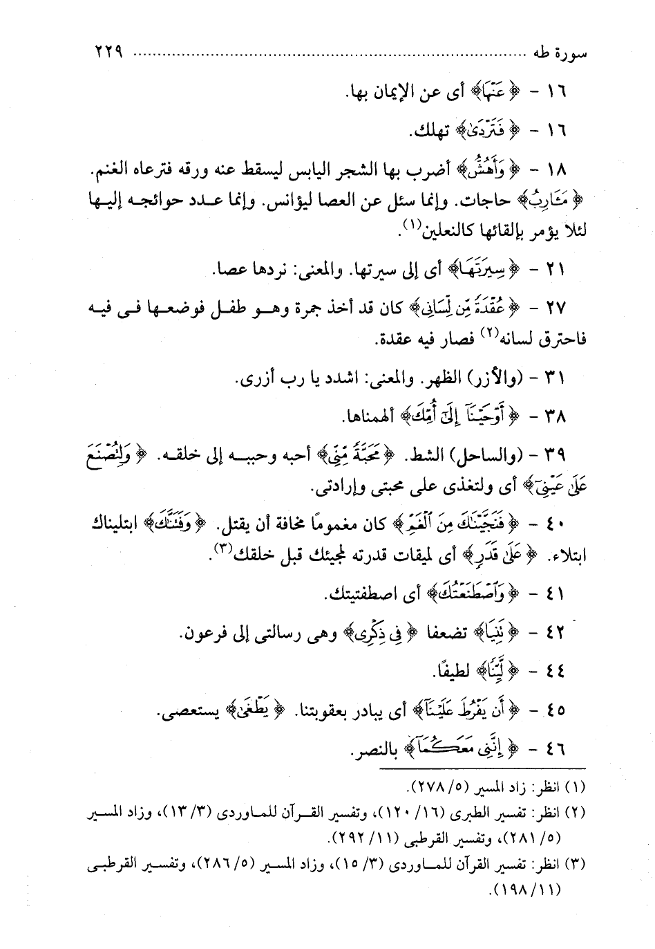 {مآرب} حاجات وانما سئل عن العصا ليؤانس وانما عدد حوائجه اليها لئلا يؤمر بالقائها كالنعلين