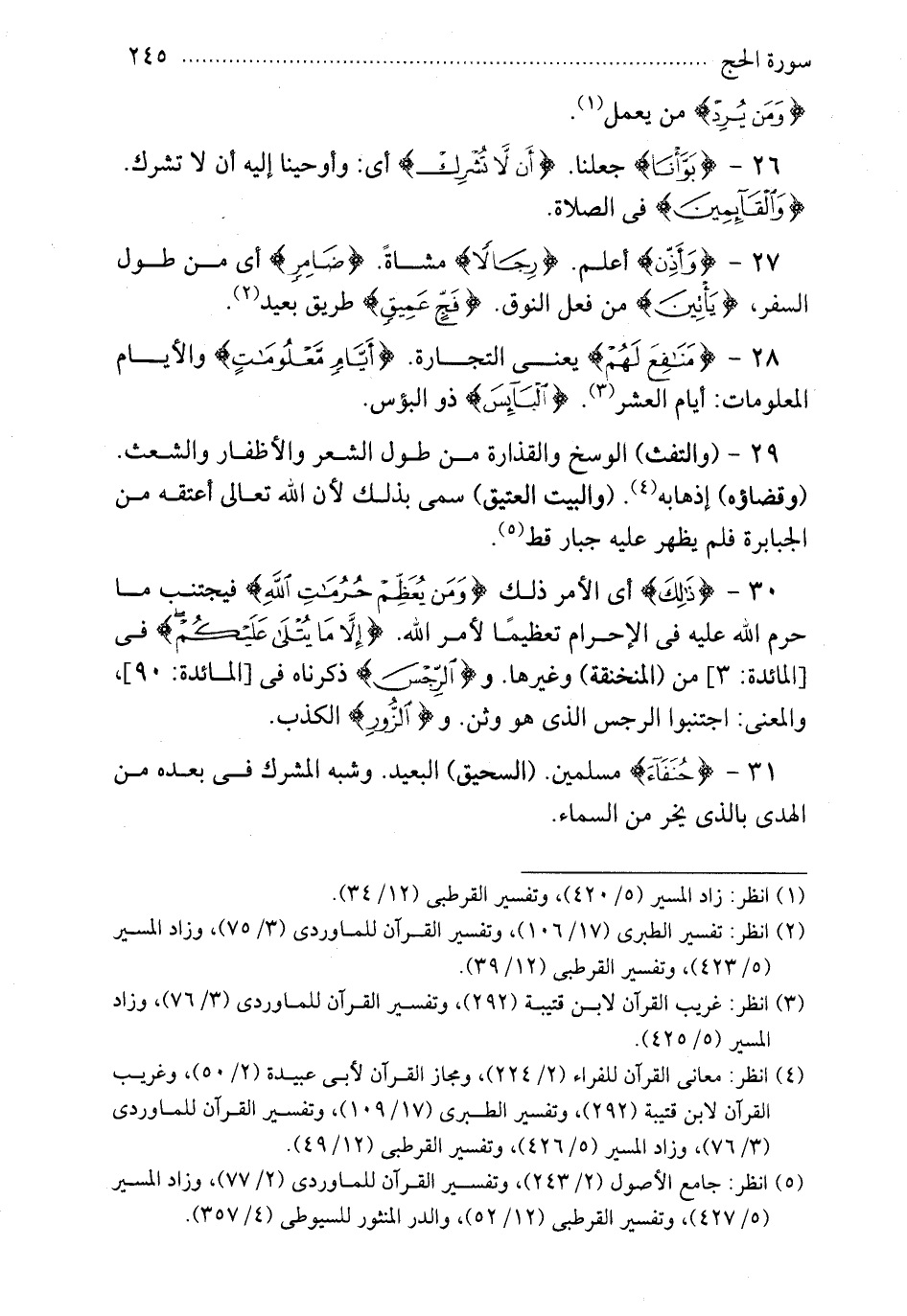 30 - {ذلك} أي الأمر ذلك {ومن يعظم حرمات} فيجتنب ما حرم الله عليه في الإحرام تعظيما لأمر الله