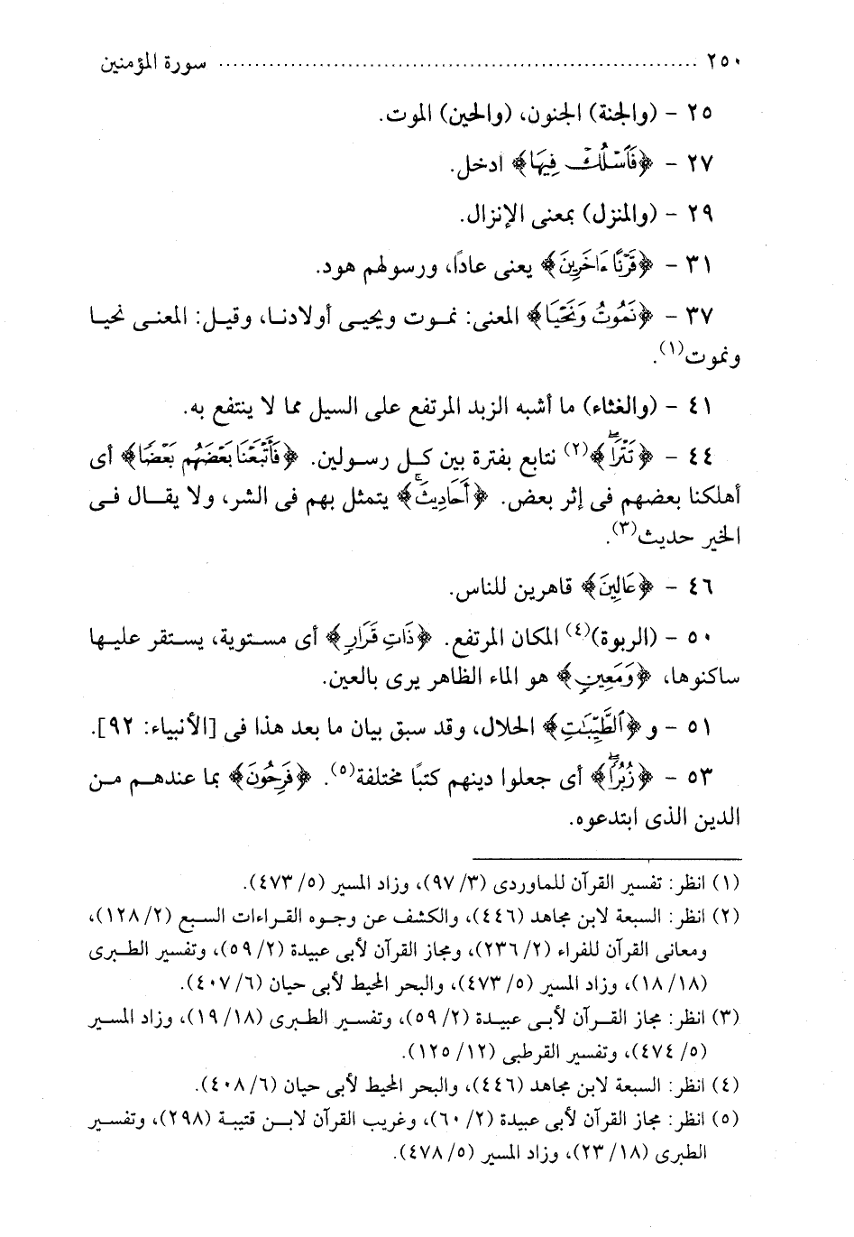50 - الربوة المكان المرتفع {ذات قرار} أي مستوية يستقر عليها ساكنوها {ومعين} هو الماء الظاهر يرى بالعين