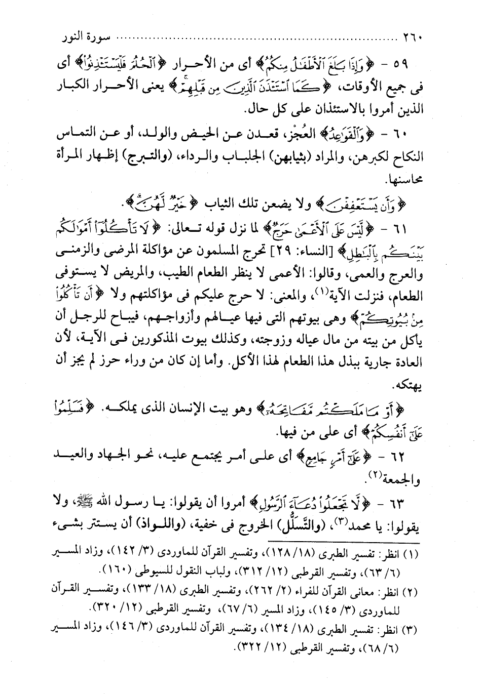 59 - {وإذا بلغ الأطفال منكم} أي من الأحرار {الحلم فليستأذنوا} أي في جميع الأوقات {كما استأذن الذين من قبلهم} يعني الأحرار الكبار الذين أمروا بالاستئذان على كل حال