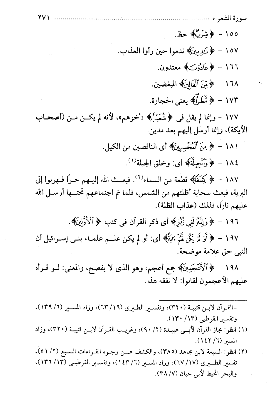 187 - {كسفا} قطعة من السماء فبعث الله إليهم حرا فهربوا إلى البرية فبعث سحابة أظلتهم من الشمس فلما تم اجتماعهم تحتها أرسل الله عليهم نارا فذلك عذاب الظلة