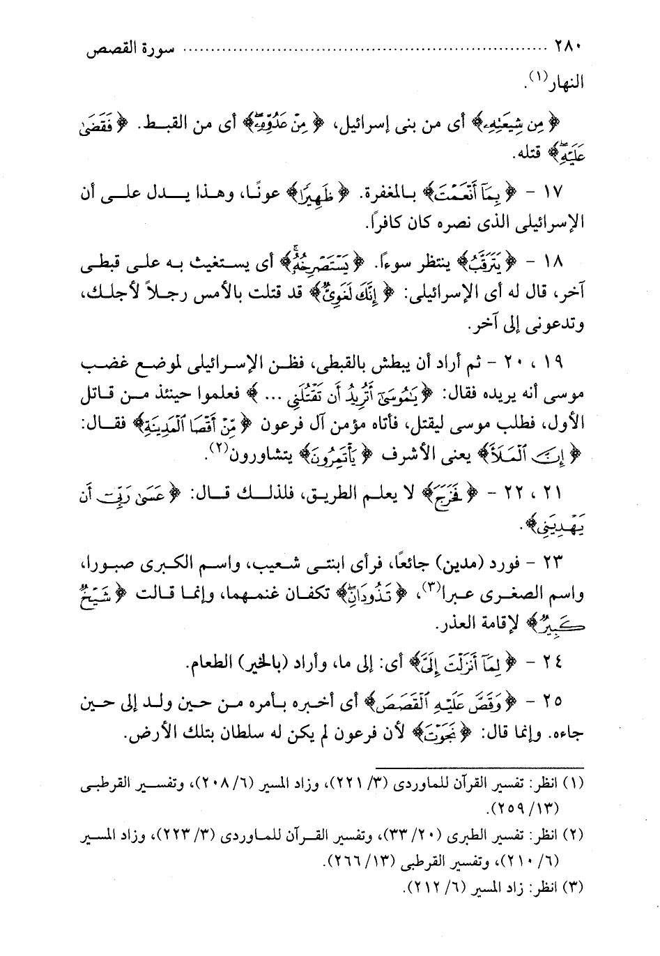 23 - فورد مدين جائعا فرأى ابنتي شعيب واسم الكبرى صبورا واسم الصغرى عبرا {تذودان} تكفان غنمهما وإنما قالت {شيخ كبير} لإقامة العذر