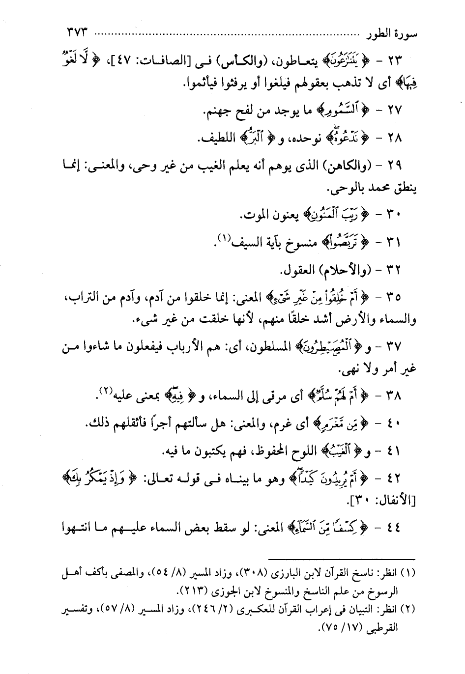 23 - {يتنازعون} يتعاطون والكأس في الصافات {لا لغو فيها} أي لا تذهب بعقولهم فيلغوا أو يرفثوا فيأثموا