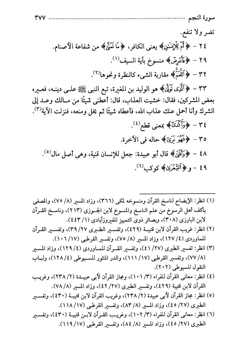 33 - {الذي تولى} هو الوليد بن المغيرة بتع النبي صلى الله عليه وسلم على دينه فعيره بعض المشركين فقال خشيت العذاب قال أعطني شيذا من مالك وعد إلى الشرك وأنا أحمل عنك عذاب الله فأعطاه شيئا ثم بخل ومنعه فنزلت الآية