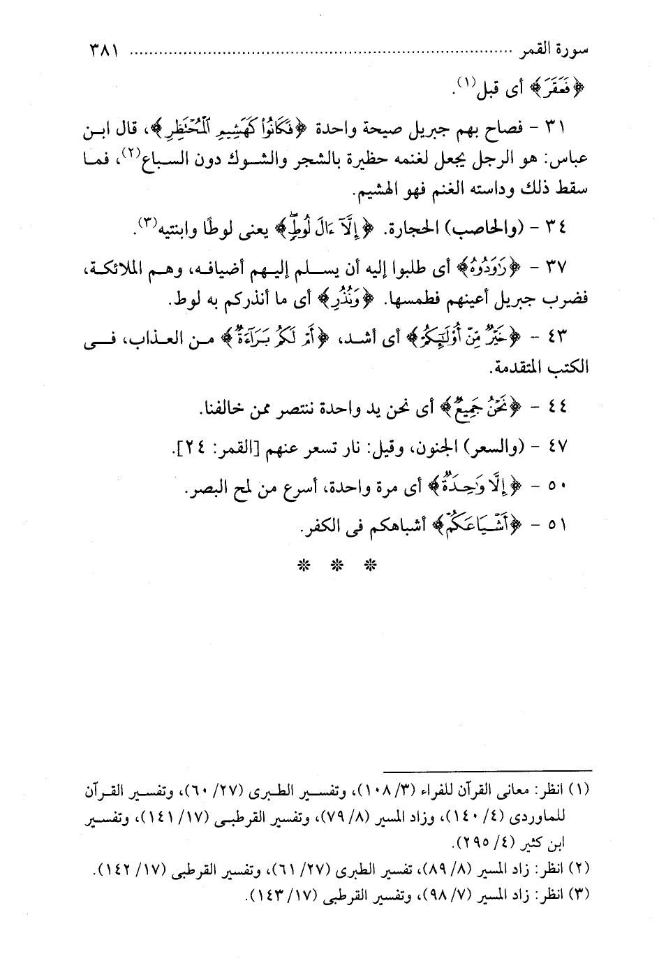 31 - فصاح بهم جبريل صيحة واحدة {فكانوا كهشيم المحتظر} قال ابن عباس هو الرجل يجعل لغنمه حظيرة بالشجرة والشوك دون السباع فما سقط ذلك وداسته الغنم فهو الهشيم