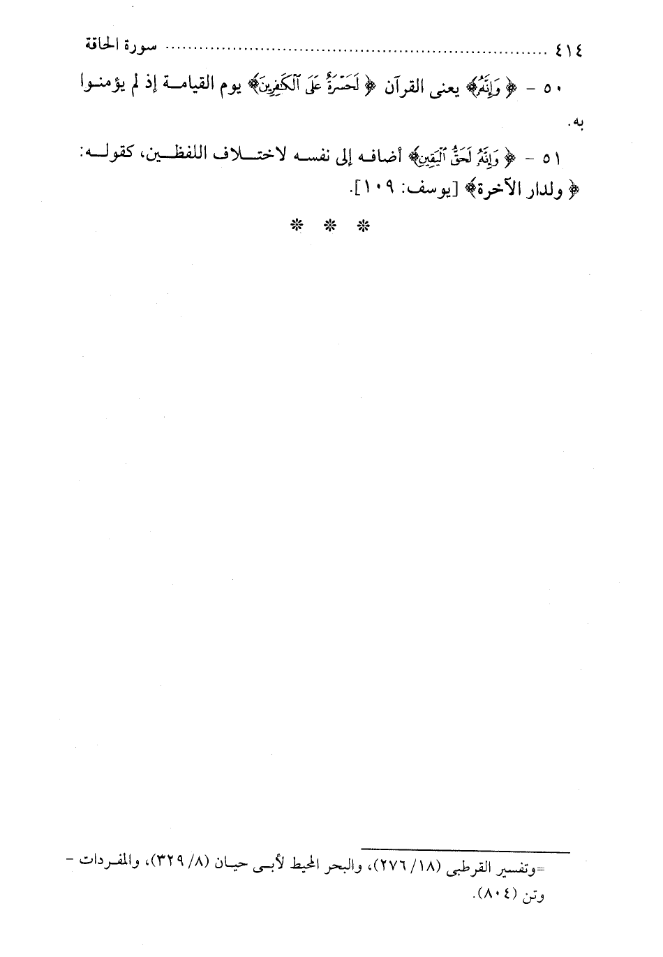 51 - {وإنه لحق اليقين} أضافه إلى نفسه لاختلاف اللفظين كقوله {ولدار الآخرة}