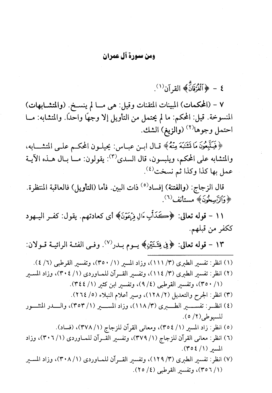 المحكمات المبينات المتقنات وقيل هي ما لم ينسخ والمتشابهات المنسوخه قيل المحكم ما لم يحتمل من التاويل الا وجها واحدا والمتشابه ما احتمل وجوها والزيغ الشك