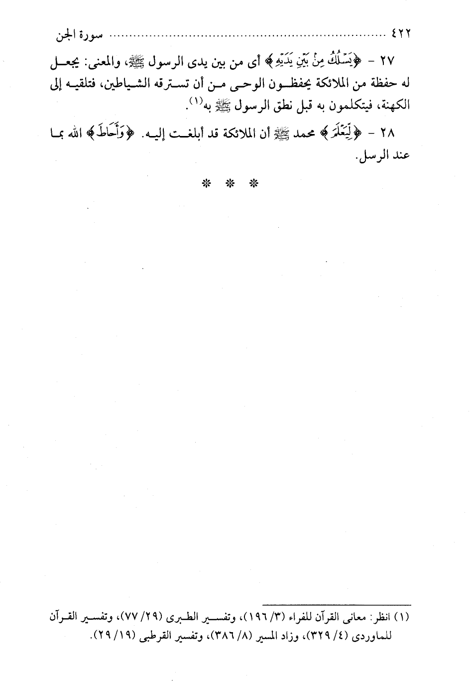 27 - {يسلك من بين يديه} من بين يدي الرسول صلى الله عليه وسلم والمعنى يجعل له حفظة من الملائكة يحفظون الوحي من أن تسترق الشياطين فتلقيه إلى الكهنة فيتكلمون به قبل الرسول صلى الله عليه وسلم به