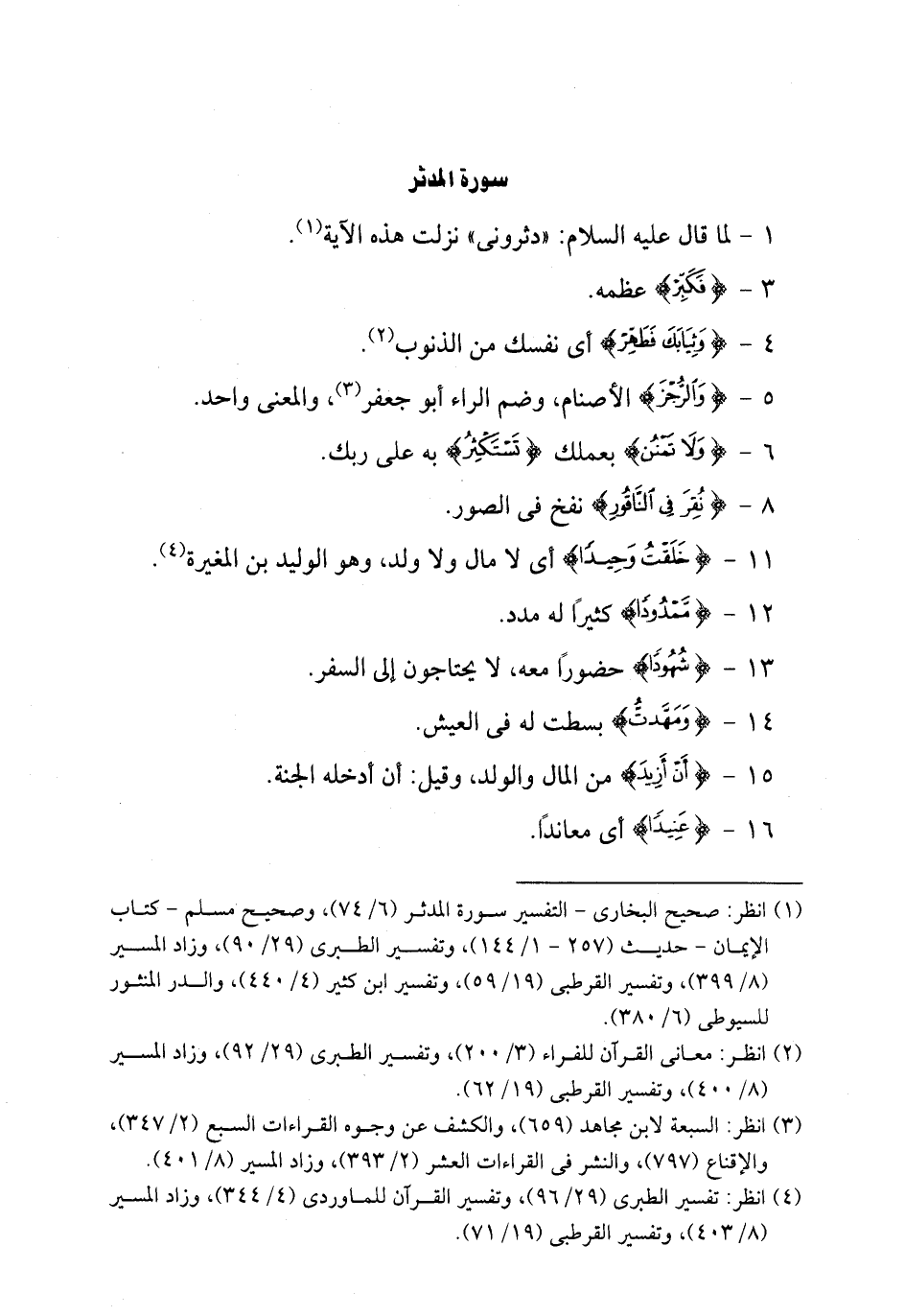 11 - {خلقت وحيدا} أي لا مال له ولا ولده وهو الوليد بن المغيرة