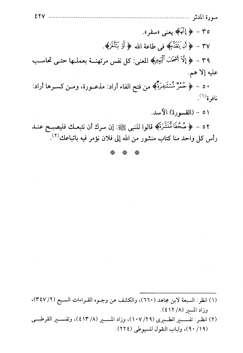 50 - {حمر مستنفرة} من فتح الفاء أراد مذعورة ومن كسرها أراد نافرة
