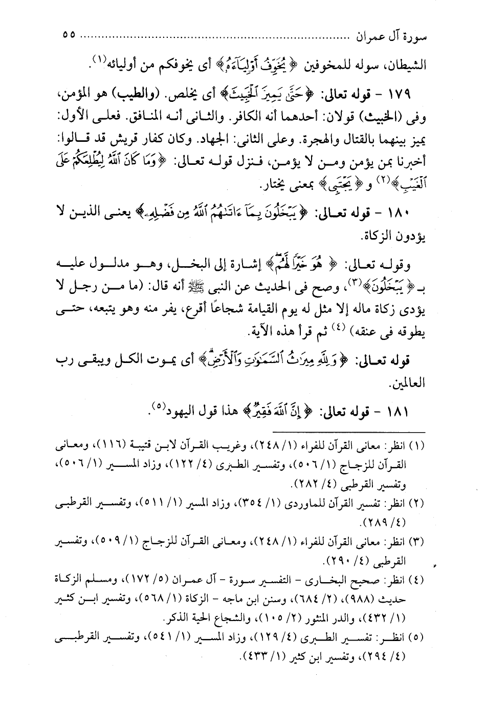 وقوله تعالى {هو خيرا لهم} اشارة الى البخل وهو مدلول عليه ب {يبخلون} وصح في الحديث عن النبي صلى الله عليه وسلم انه قال ما من رجل لا يؤدي زكاة ماله الا مثل له يوم القيامة شجاعا اقرع يفر منه وهو يتبعه حتى يطوقه في عنقه ثم قرا هذه الاية