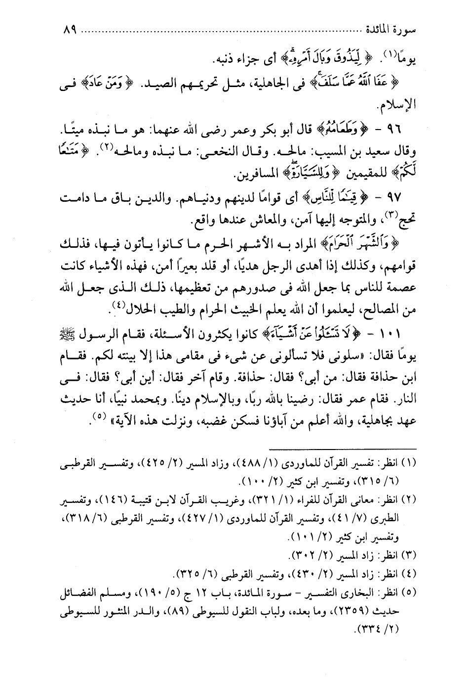 {لا تسألوا عن أشياء} كانوا يكثرون الاسئله فقام الرسول صلى الله عليه وسلم يوما فقال سلوني فلا تسالوني عن شيء في مقامي هذا الا بينته لكم فقام ابن حذافه فقال من ابي فقال حذافه وقام اخر فقال اين ابي قال في النار فقام عمر فقال رضينا بالله ربا وبالاسلام دينا وبمحمد نبيا انا حديث عهد بجا هليه واله اعلم من اباؤنا فسكن غضبه ونزلت هذه الايه