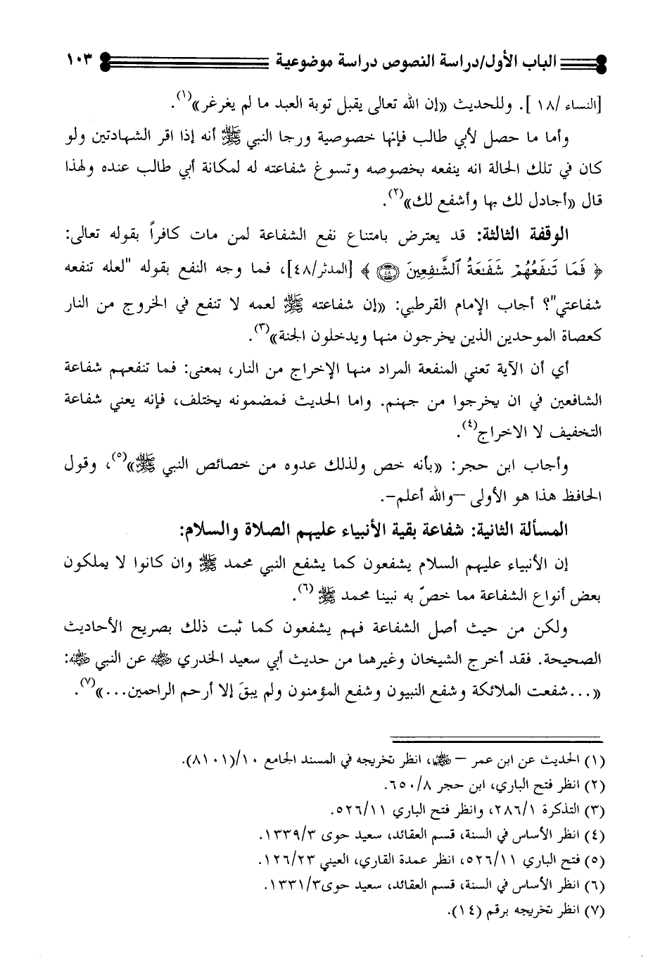(¬7) انظر الاساس في السنة، قسم العقائد، سعيد حوى3/ 1331.