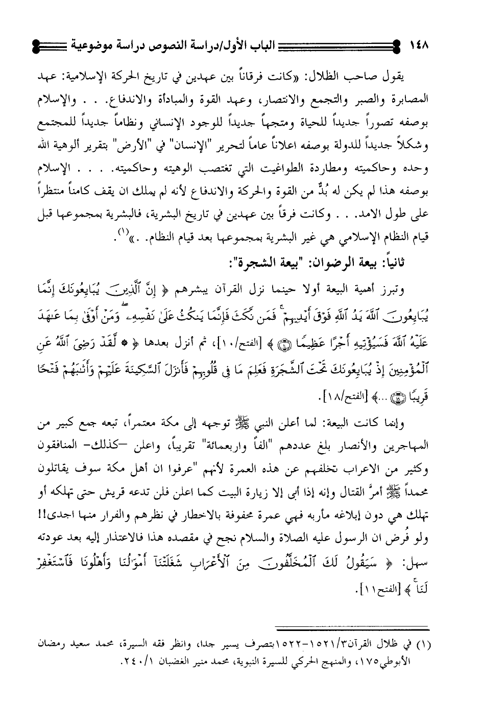 (¬1) في ظلال القرآن3/ 1521 - 1522بتصرف يسير جدا، وانظر فقه السيرة، محمد سعيد رمضان الأبوطي175، والمنهج الحركي للسيرة النبوية، محمد منير الغضبان 1/ 240.