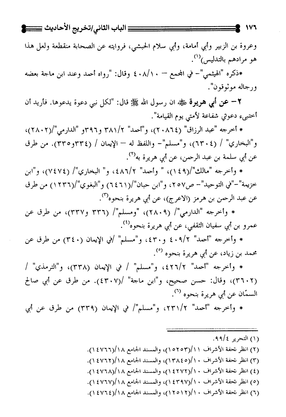 (¬6) انظر تحفة الاشراف 10/ (12512)، والمسند الجامع 18/ (14764).