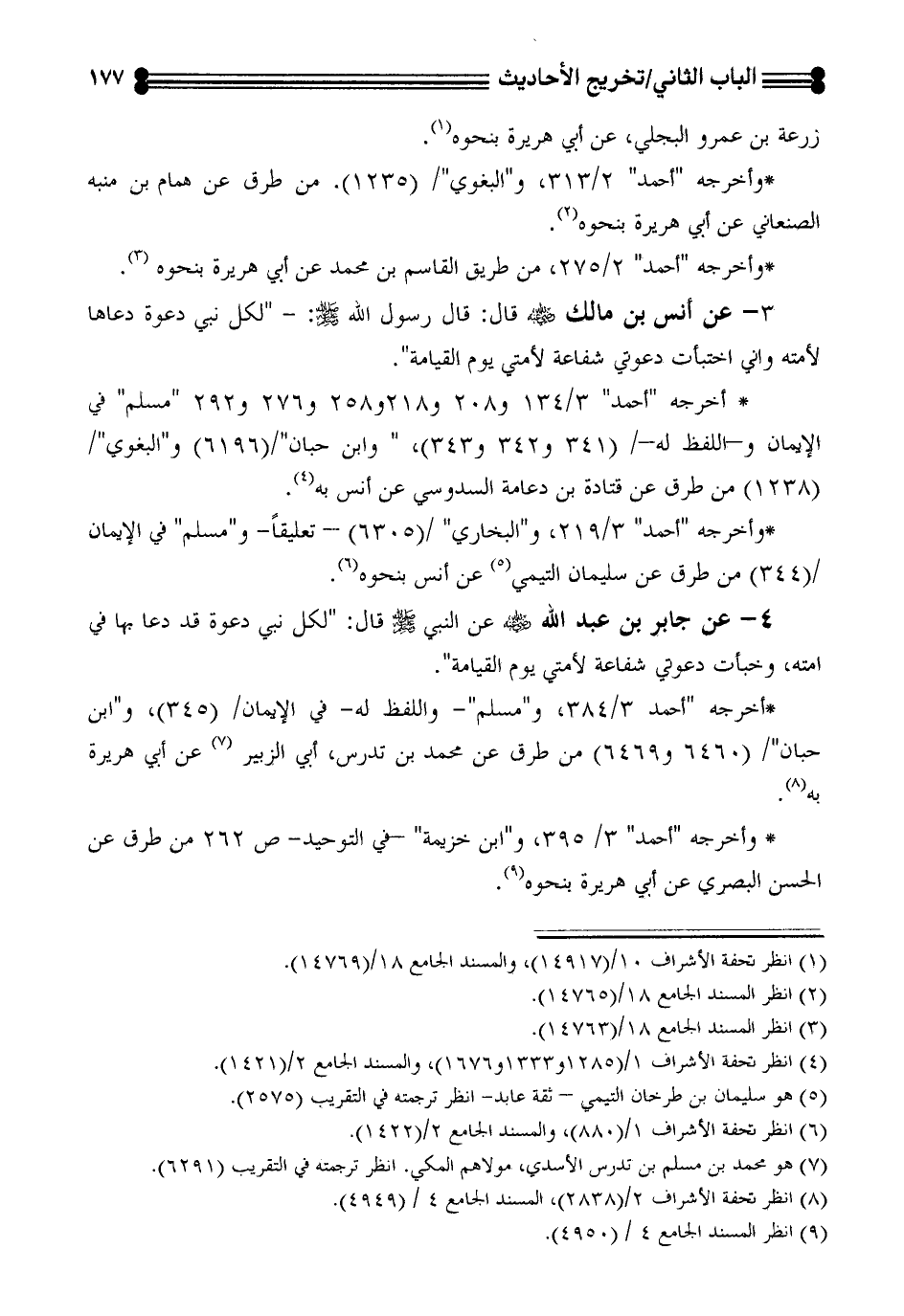 (¬8) انظر تحفة الاشراف 2/ (2838)، المسند الجامع 4 / (4949).