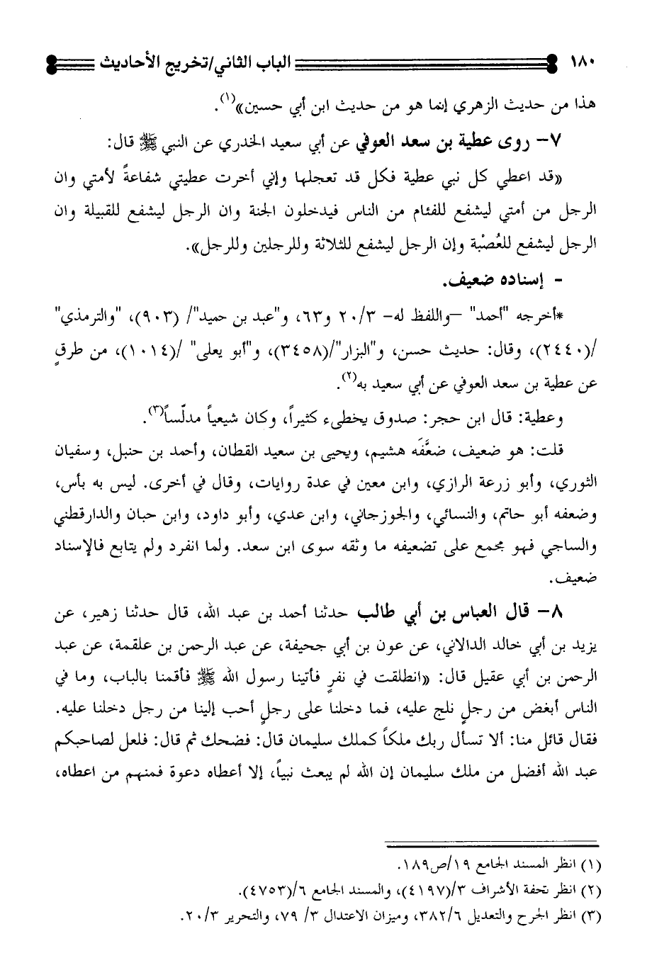 7 - روى عطية بن سعد العوفي عن أبي سعيد الخدري عن النبي - صلى الله عليه وسلم - قال: