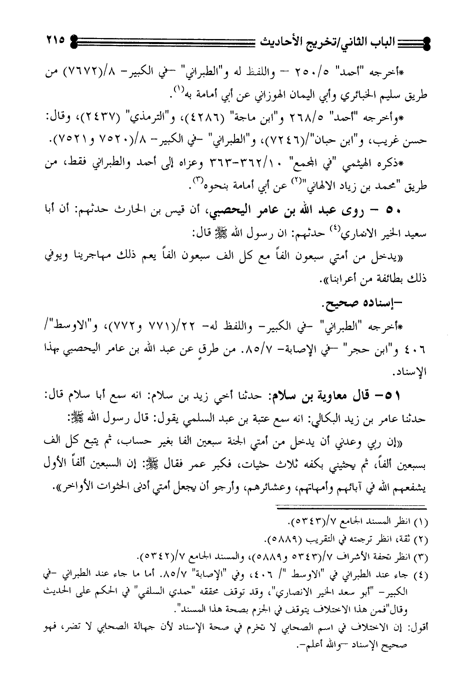 (¬4) جاء عند الطبراني في "الاوسط "/ 406، وفي "الاصابة" 7/ 85. أما ما جاء عند الطبراني -في الكبير- "أبو سعد الخير الانصاري"، وقد توقف محققه "حمدي السلفي" في الحكم على الحديث وقال"فمن هذا الاختلاف يتوقف في الجزم بصحة هذا المسند".