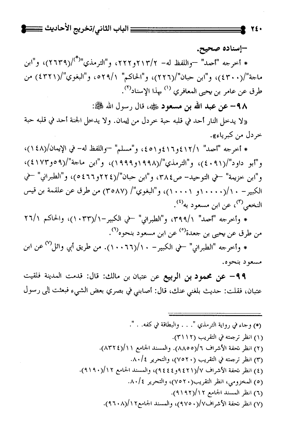 (¬7) 5 انظر تحفة الاشراف7/ (9750)، والمسند الجامع12/ (9608).