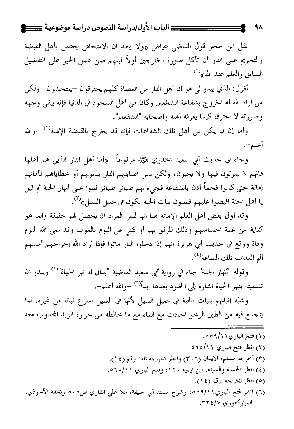 (¬6) انظر فتح الباري11/ 559، وشرح مسند أبي حنيفة، ملا علي القاري ص505 وتحفة الاحوذي، المباركفوري 7/ 324.