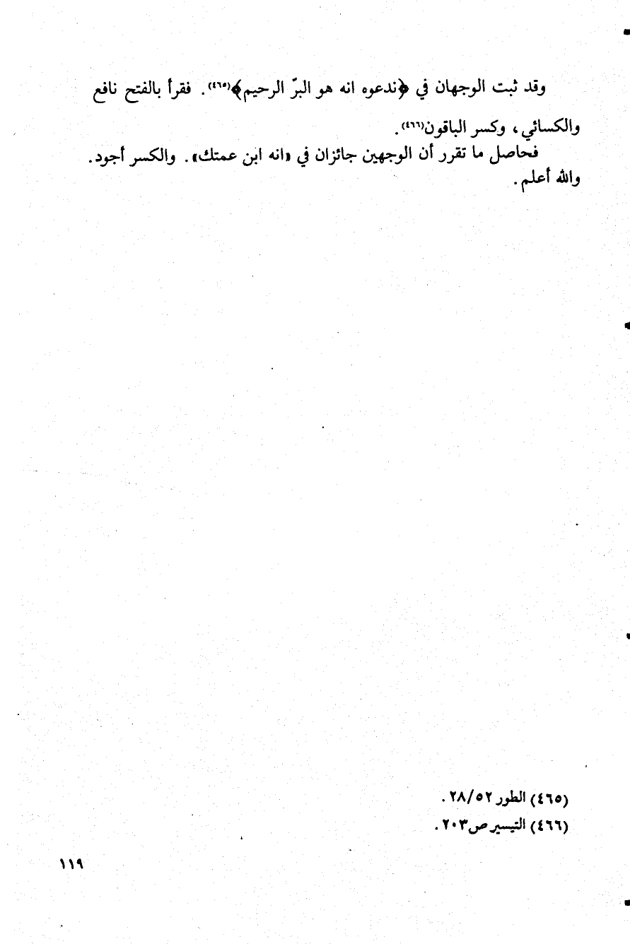 وقد ثبت الوجهان في {نَدْعُوهُ إِنَّهُ هُوَ الْبَرُّ الرَّحِيمُ} (¬465). فقرأ بالفتح نافع والكسائي، وكسر الباقون (¬466).