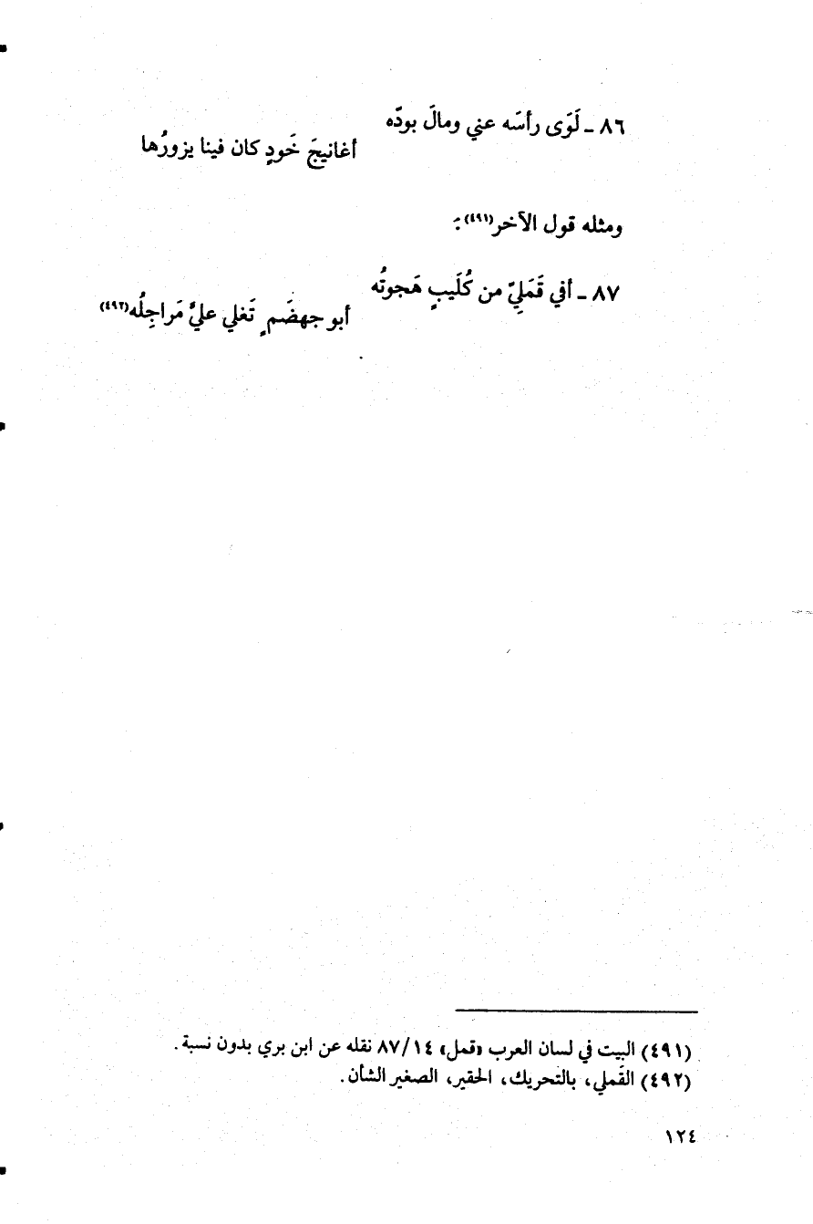 (¬491) البيت في لسان العرب " قمل" 14/ 87 نقله عن ابن بري بدون نسبة.