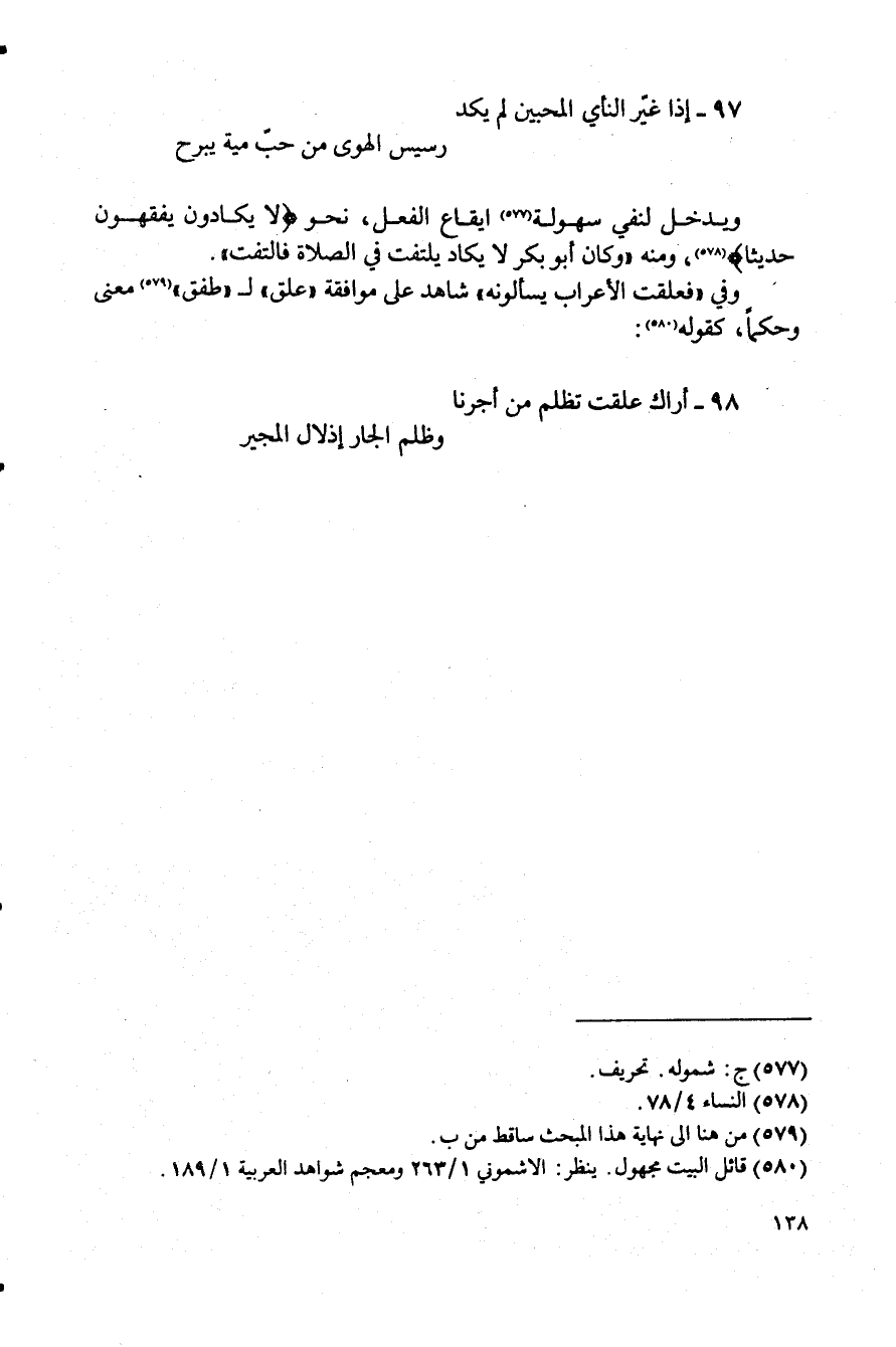 (¬580) قائل البيت مجهول. ينظر: الأشموني 1/ 263 ومعجم شواهد العربية 1/ 189.