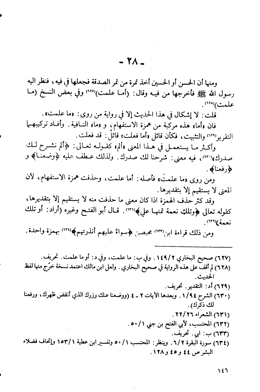 وقد كثر حذف الهمزة إذا كان معنى ما حذفت منه لا يستقيم إلا بتقديرها، كقوله تعالى {وَتِلْكَ نِعْمَةٌ تَمُنُّهَا عَلَيَّ} (¬631). قال أبو الفتح وغيره (أراد: أو تلك نعمة) (¬632).