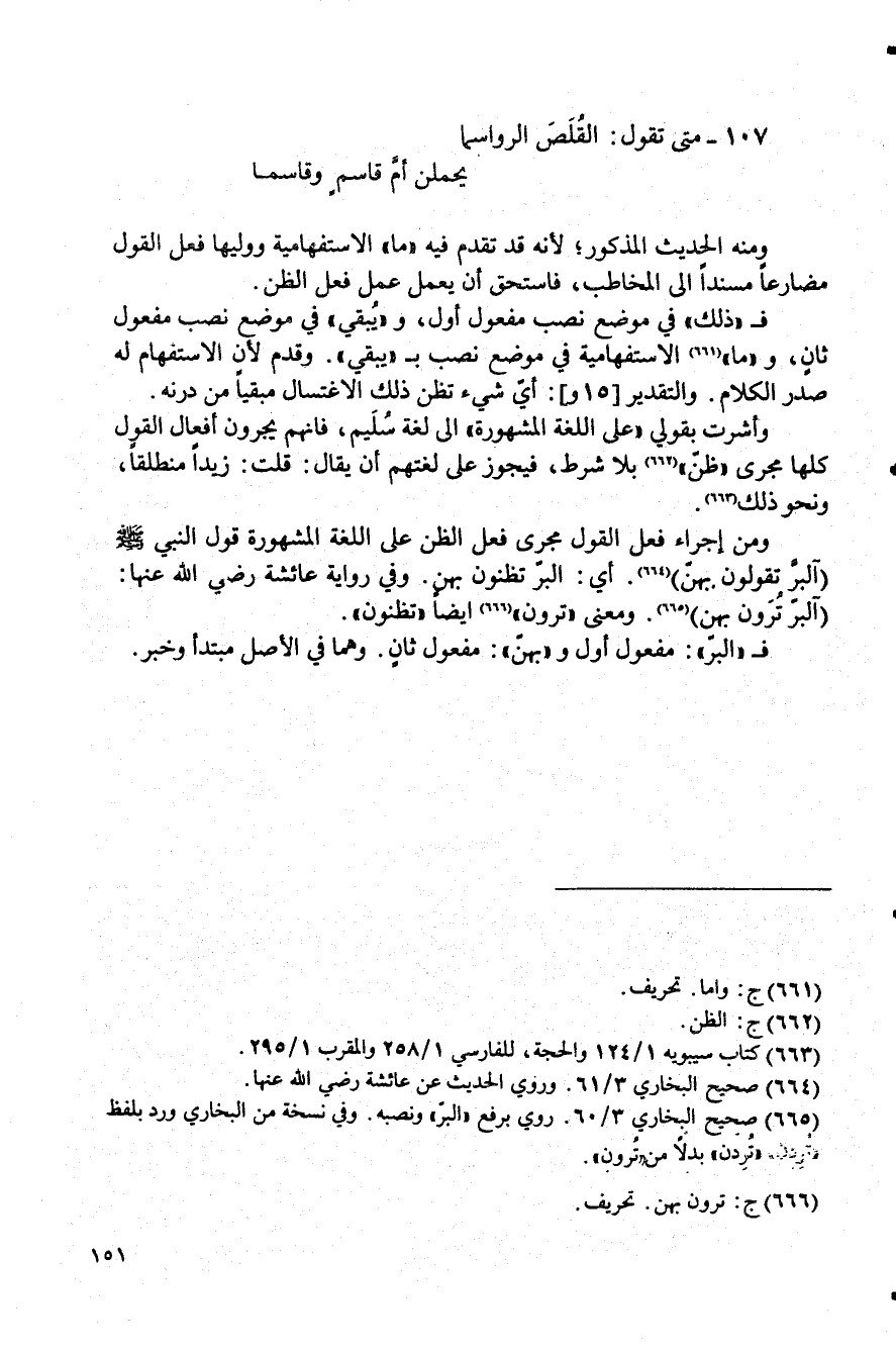 وأشرت بقولي "على اللغة المشهورة" إلى لغة سلَيم" فانهم يجرون أفعال القول كلها مجرى" ظن" (¬662) بلا شرط، فيجوز على لغتهم أن يقال: قلت: زيدًا منطلقًا، ونحو ذلك (¬663).