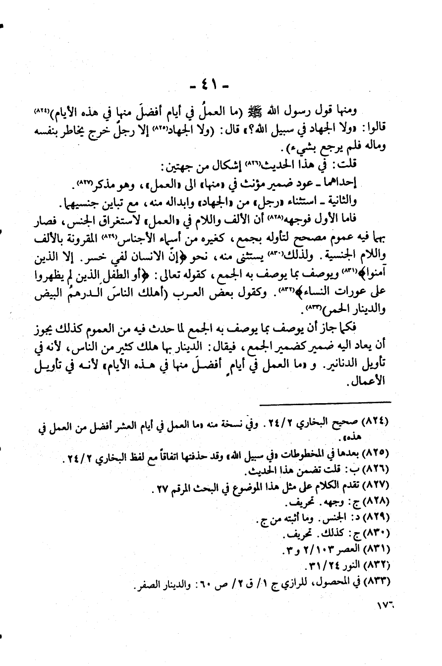 (¬824) صصحيح البخاري 2/ 24. وفي نسخة منه "ما العمل في أيام العشر أفضل من العمل في هذه"