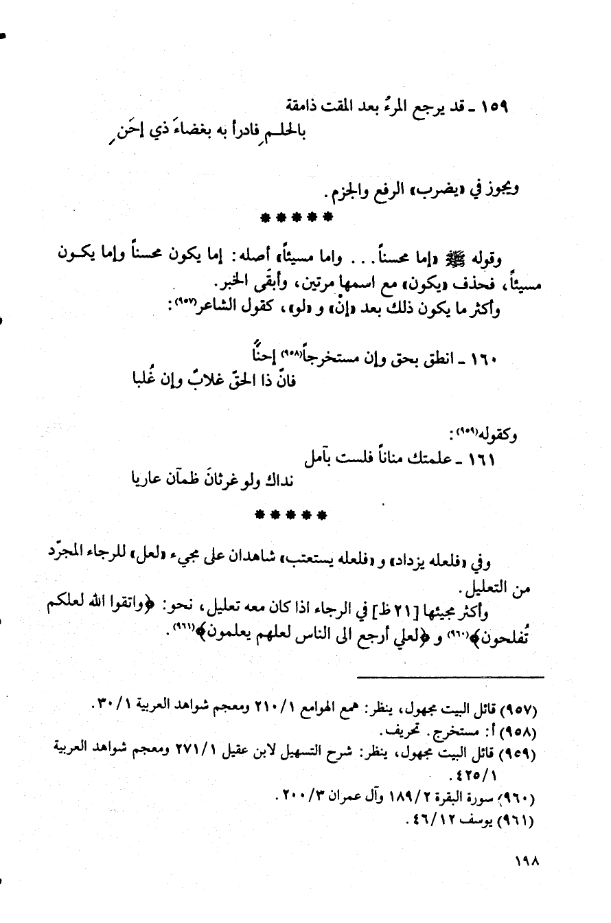(¬957) قائل البيت مجهول، ينظر: همع الهوامع 1/ 210 ومعجم شواهد العربية 1/ 30.