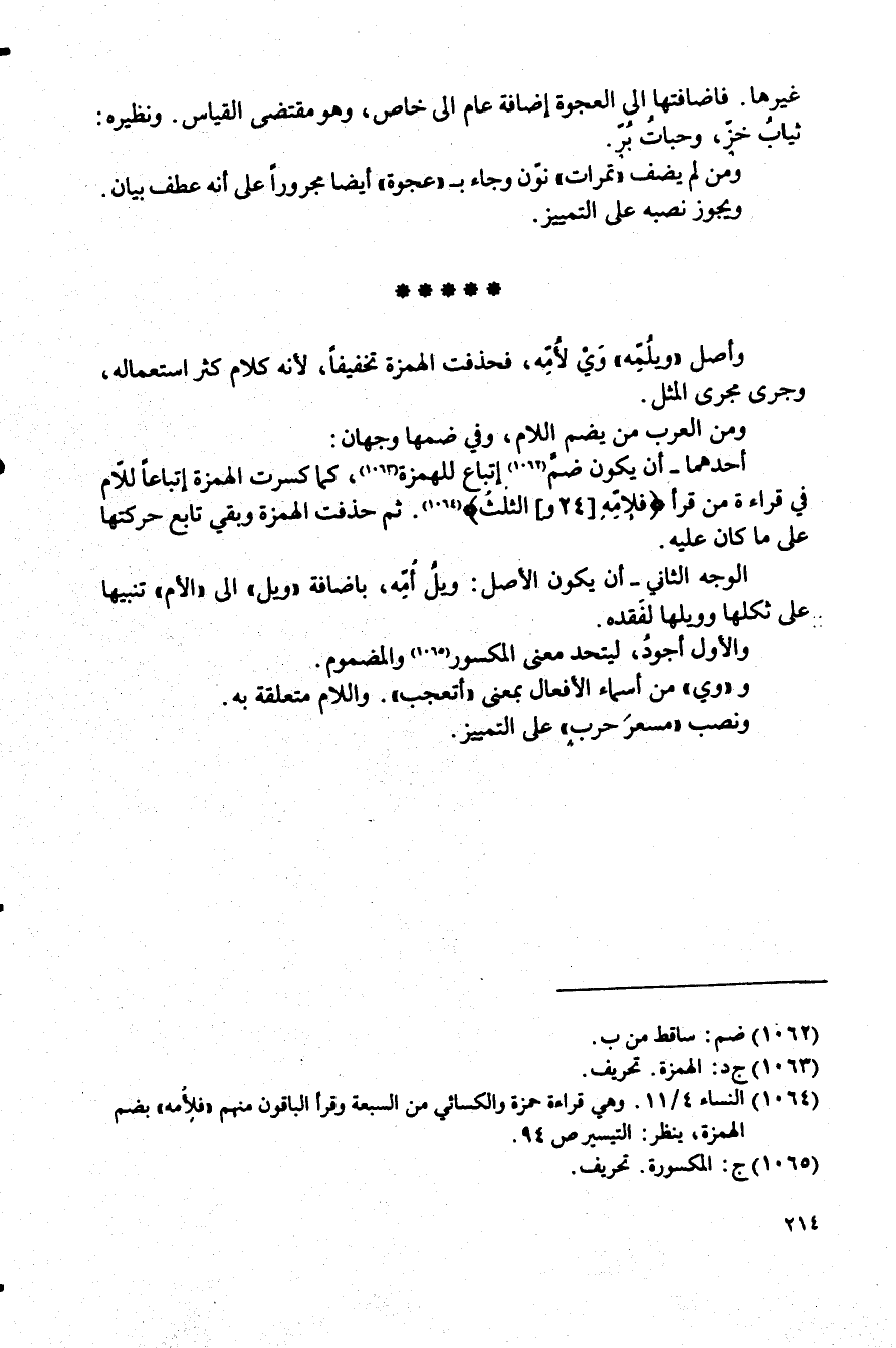 (¬1064) النساء4/ 11. وهى قراءة حمزة والكسائى من السبعة وقرأ الباقون منهم "فلإُمه" بضم