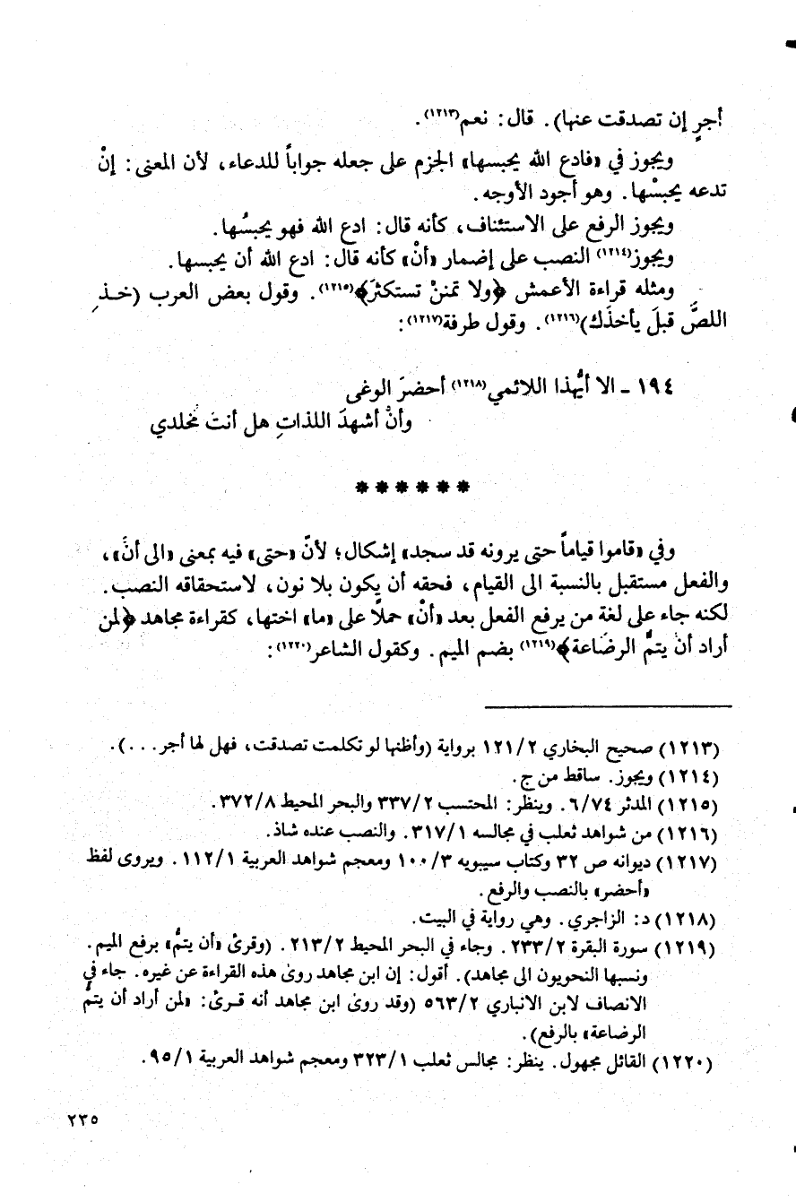 (¬1219) سورة البقرة 2/ 233. وجاء في البحر المحيط 3/ 212. (وقرئ "أن يتم" برفع الميم.