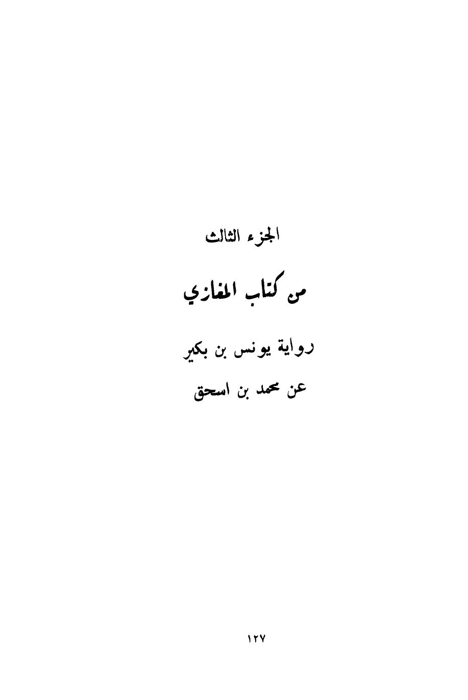 الجزء الثالث من كتاب المغازي رواية يونس بن بكير عن محمد بن اسحق