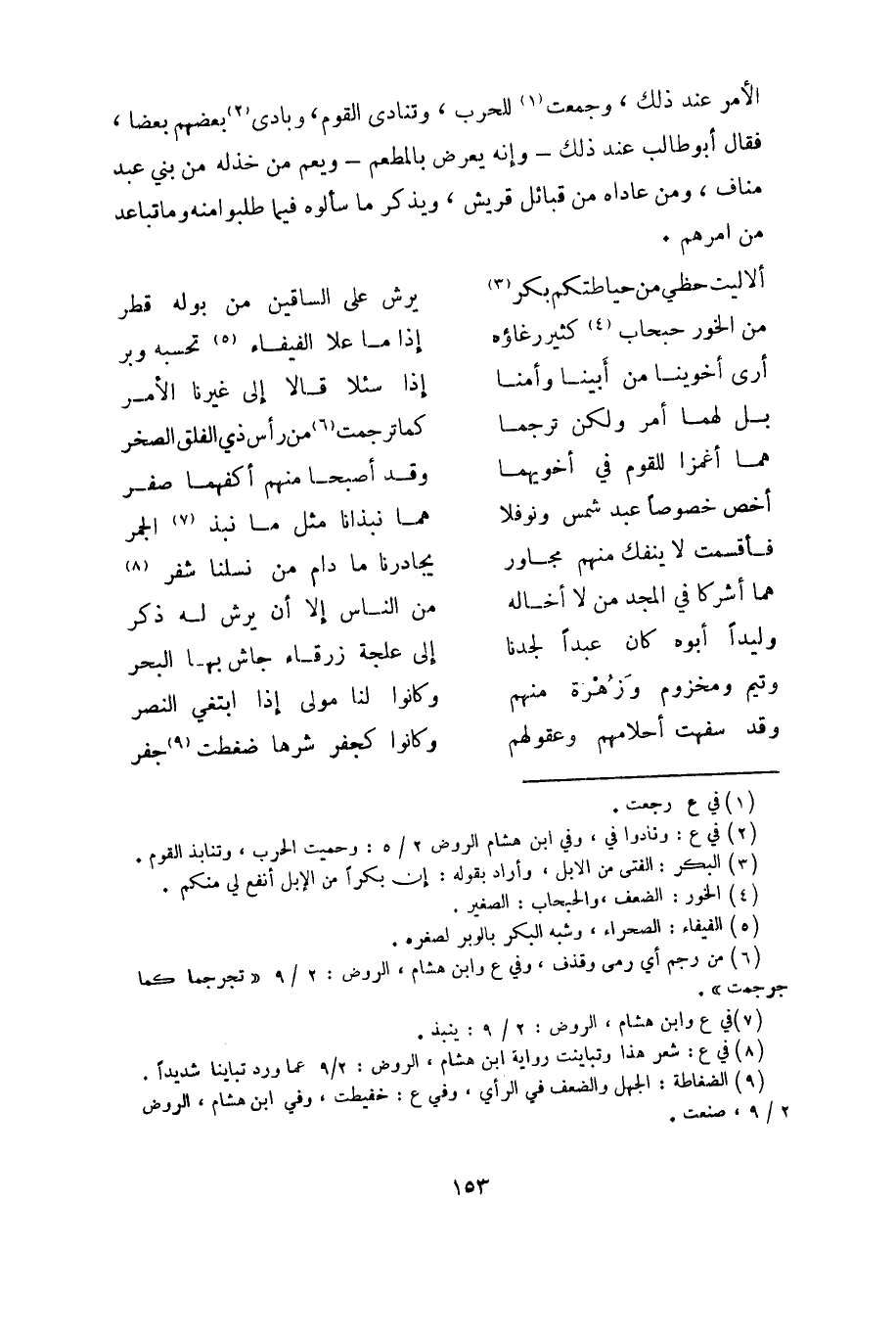 (8) في ع: شعر هذا وتباينت رواية ابن هشام، الروض: 2/ 9 عما ورد تباينا شديدا.