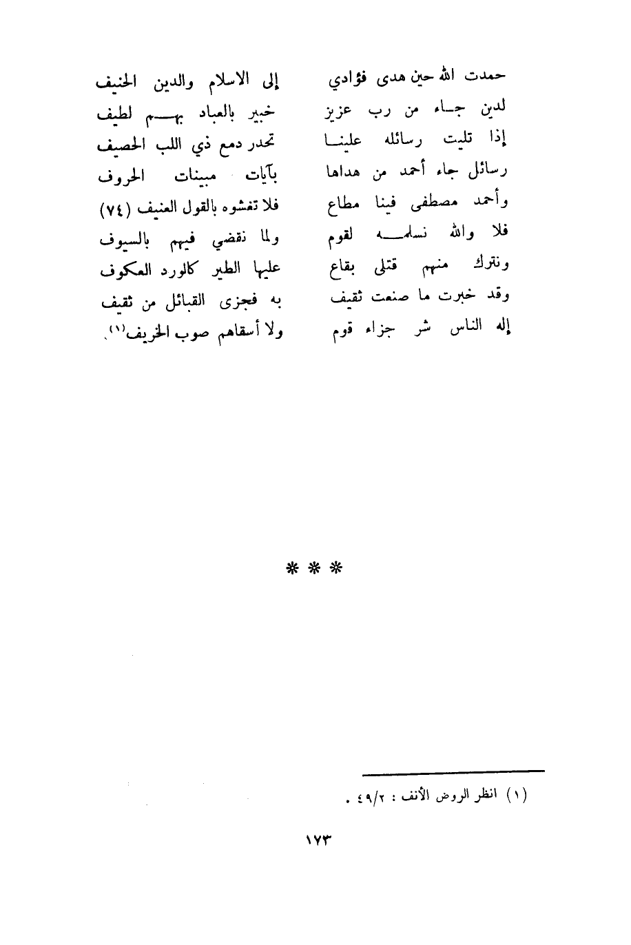 حمدت الله حين هدى فؤادي ... إلى الاسلام والدين الحنيف