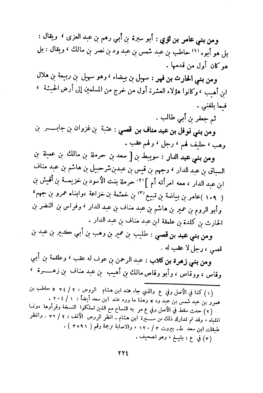 (2) حدث سقط في الأصل وفي ع مر به النساح مع الذين تملكوا النسخة وقرأوها دونما انتباه، وقد تم تدارك ذلك من سيرة ابن هشام- انظر الروص الأنف: 2/ 72. وانظر طبقات ابن سعد ط. بيروت 3/ 120، والاصابة ترجمة رقم (3591) .
