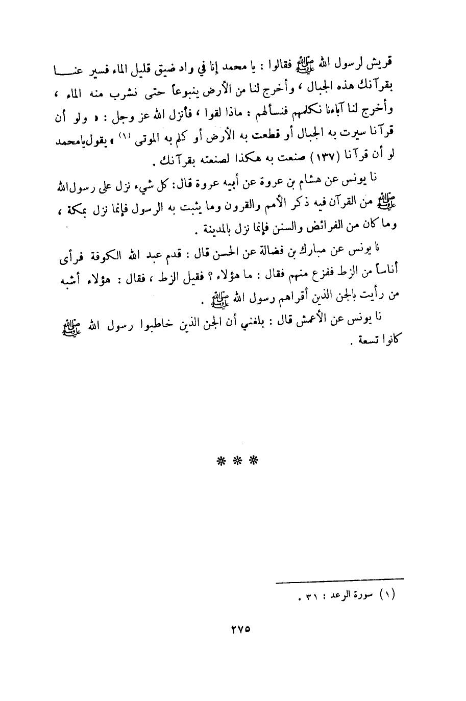 نا يونس عن الأعمش قال: بلغني أن الجن الذين خاطبوا رسول الله صلى الله عليه وسلم كانوا تسعة.