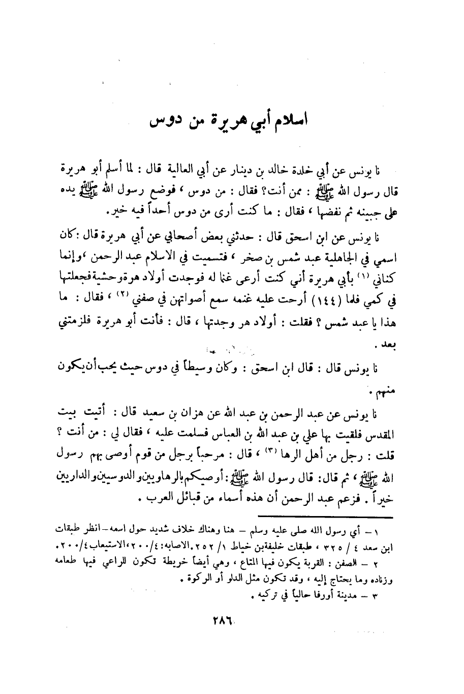 (1) أي رسول الله صلى عليه وسلم- هنا وهناك خلاف شديد حول اسمه- انظر طبقات ابن سعد 4/ 325، طبقات خليفة بن خياط 1/ 252. الاصابه: 4/ 200، الاستيعاب 4/ 200.