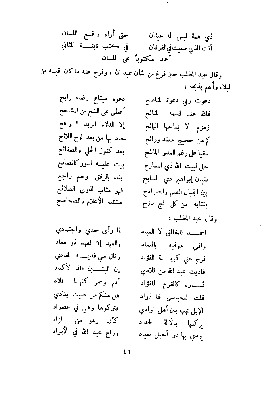 وقال عبد المطلب حين فرغ من شأن عبد الله، وفرج عنه ما كان فيه من البلاء وألهم بذبحه: