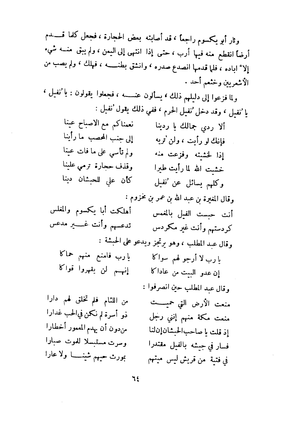 ولما فزعوا إلى دليلهم ذلك، يسألون عنه، فجعلوا يقولون: يا نفيل، يا نفيل، وقد دخل نفيل الحرم، ففي ذلك يقول نفيل: