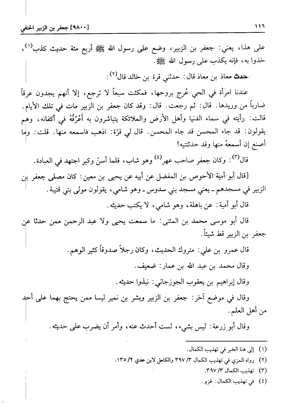 على هذا، يعني: جعفر بن الزبير، وضع على رسول الله صلى الله عليه وسلم أربع مئة حديث كذب «1» ، خذوا به، فإنه يكذب على رسول الله صلى الله عليه وسلم.