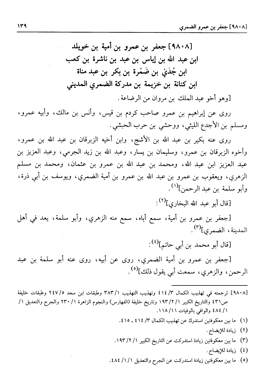 [9808] جعفر بن عمرو بن أمية بن خويلد ابن عبد الله بن إياس بن عبد بن ناشرة بن كعب ابن جدي بن ضمرة بن بكر بن عبد مناة ابن كنانة بن خزيمة بن مدركة الضمري المديني